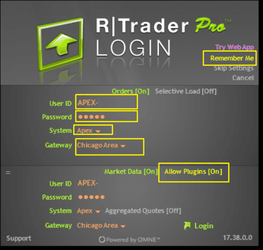 i) Make sure you input User ID, Password, System = Apex, Gateway = ChicagoArea